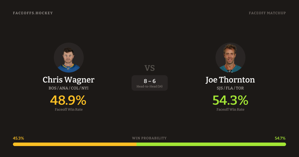 Chris Wagner vs Joe Thornton — Faceoff Head-to-Head