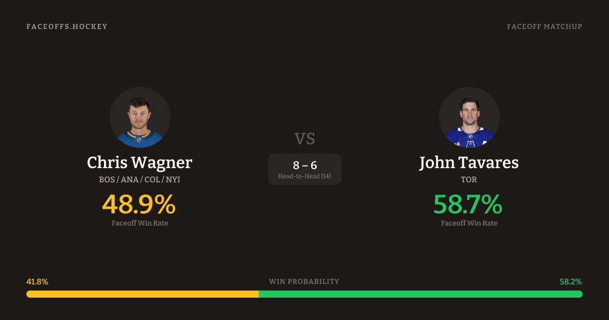Chris Wagner vs John Tavares — Faceoff Head-to-Head