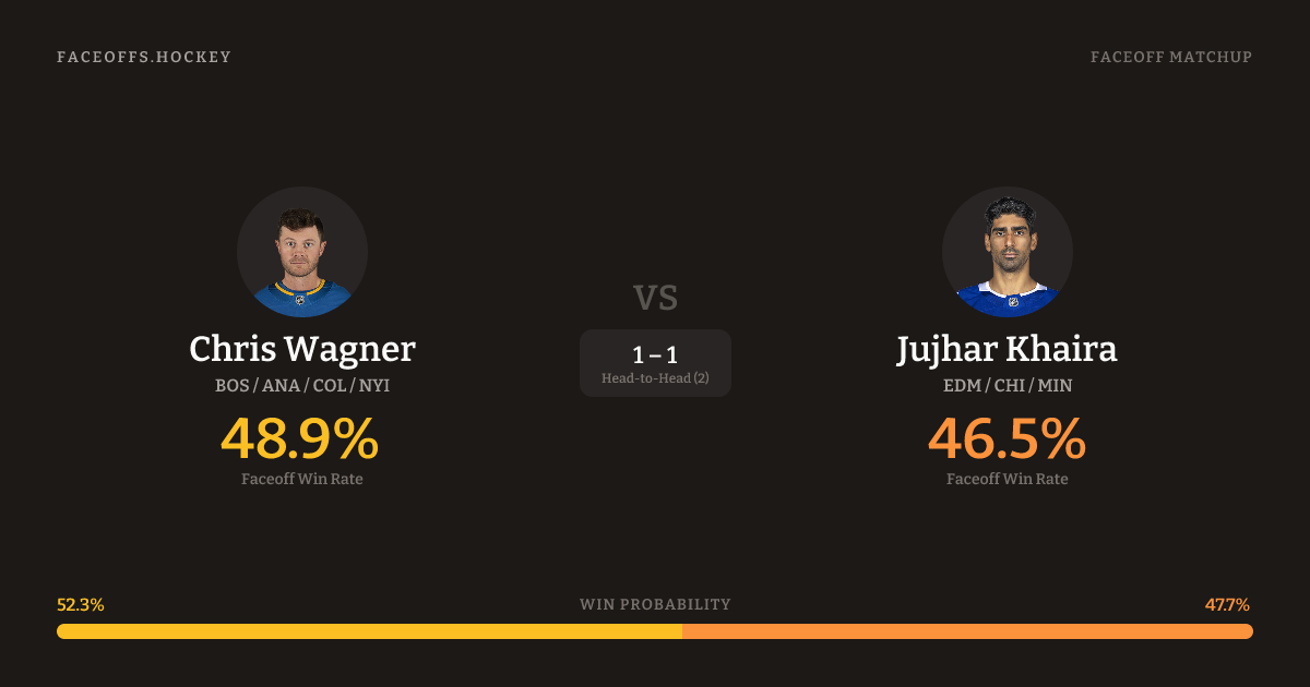 Chris Wagner vs Jujhar Khaira — Faceoff Head-to-Head