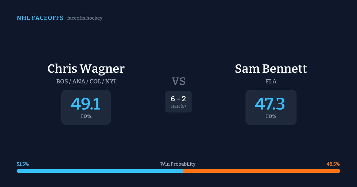 Chris Wagner vs Sam Bennett — Faceoff Head-to-Head
