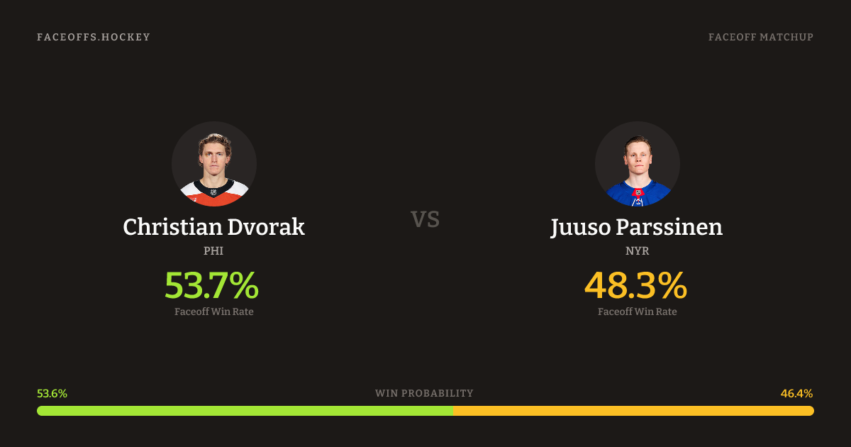 Christian Dvorak vs Juuso Parssinen — Faceoff Head-to-Head