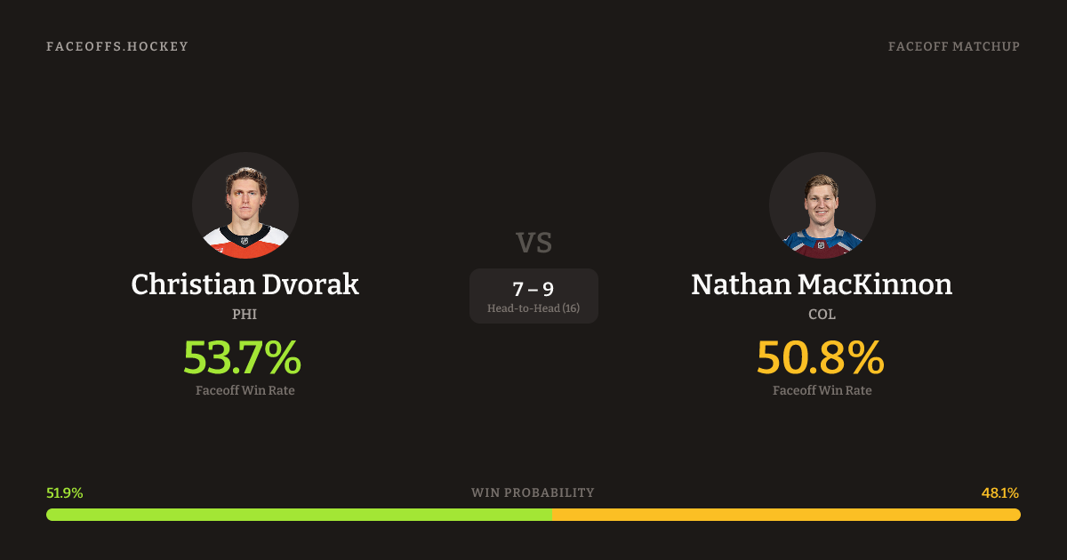 Christian Dvorak vs Nathan MacKinnon — Faceoff Head-to-Head