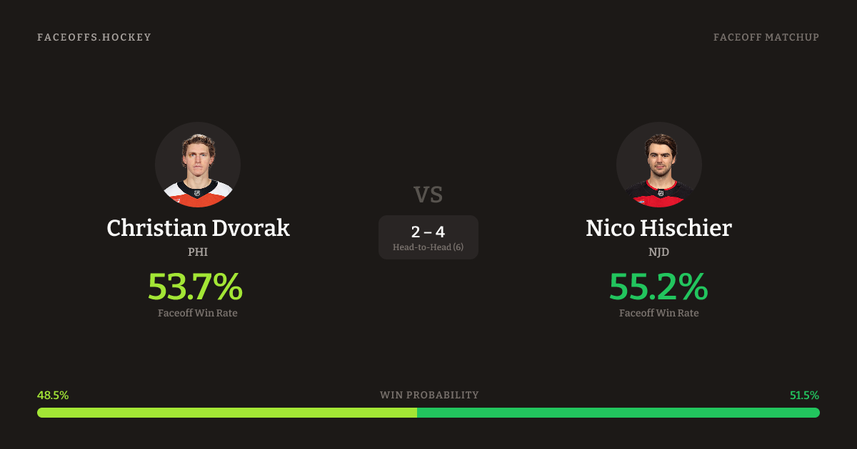 Christian Dvorak vs Nico Hischier — Faceoff Head-to-Head