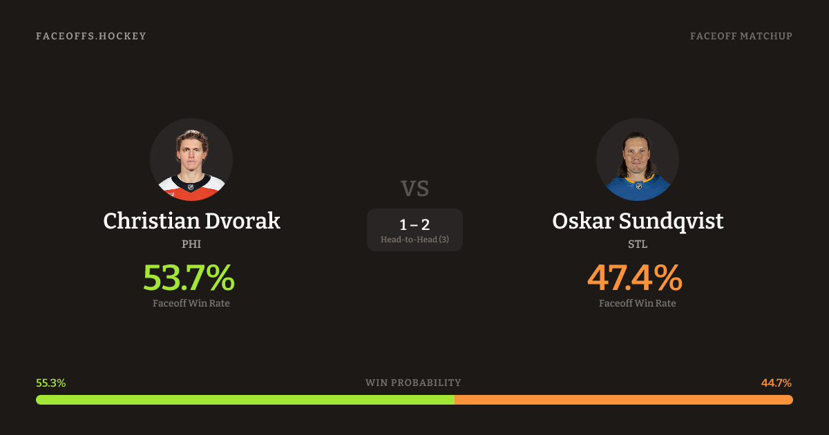 Christian Dvorak vs Oskar Sundqvist — Faceoff Head-to-Head