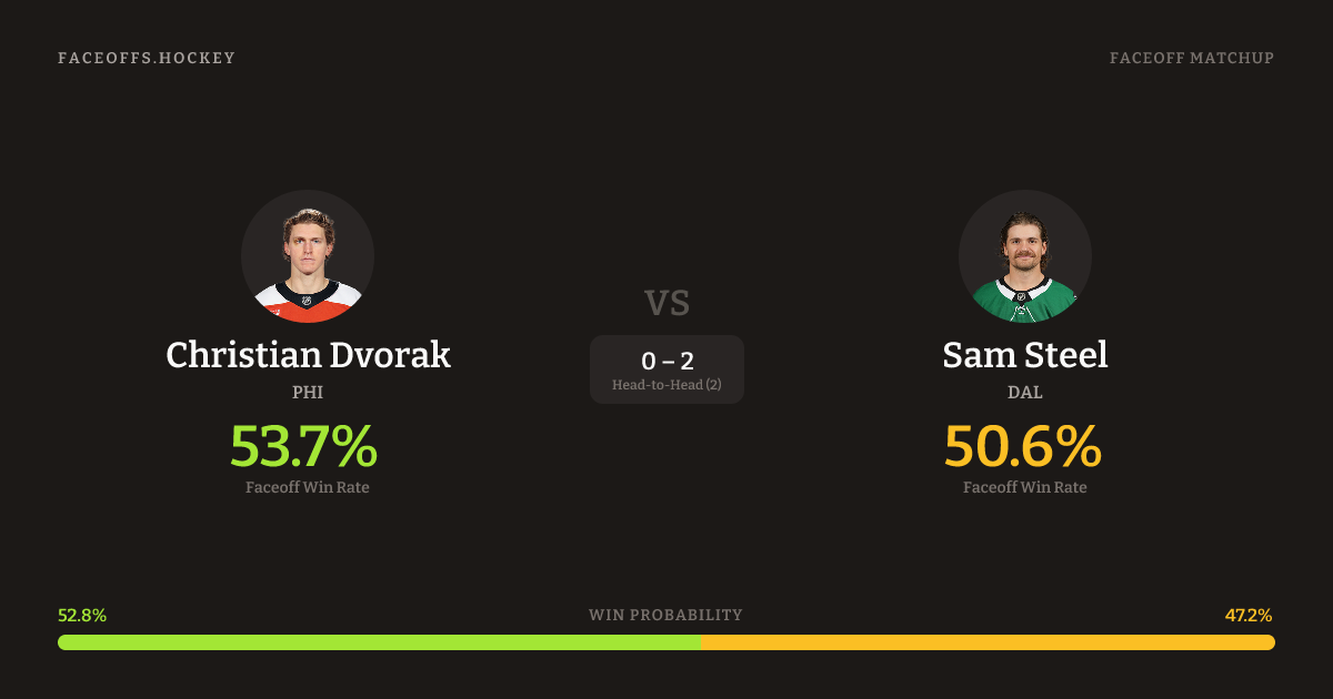 Christian Dvorak vs Sam Steel — Faceoff Head-to-Head