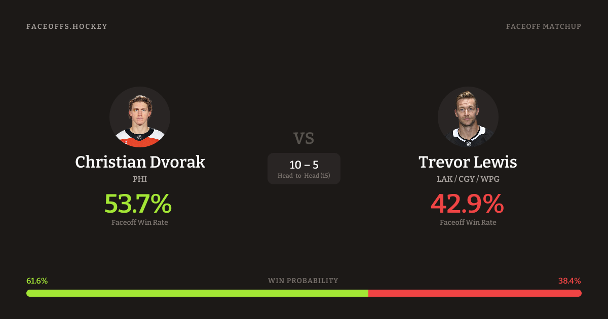 Dvorak shoots left. Lewis is 43.5% vs left-shot opponents (207).