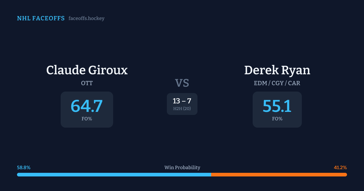 Claude Giroux vs Derek Ryan — Faceoff Head-to-Head