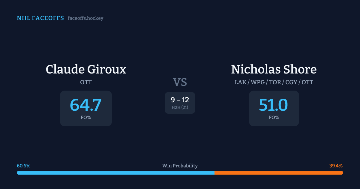 Claude Giroux vs Nicholas Shore — Faceoff Head-to-Head