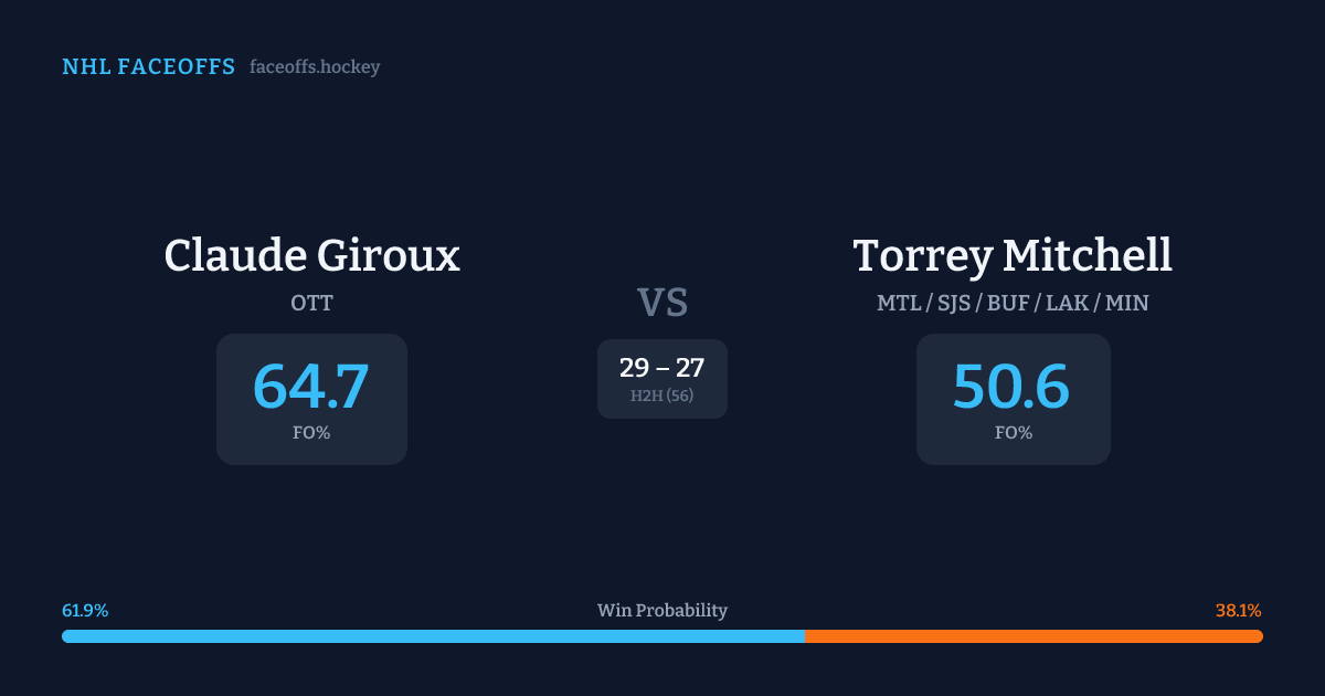 Claude Giroux vs Torrey Mitchell — Faceoff Head-to-Head