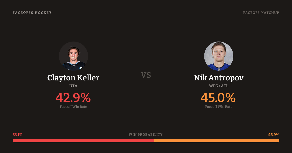 Nik Antropov holds a +4.2% FO% edge overall. Keller wins 43.0% vs left-shot opponents — Antropov shoots left.
