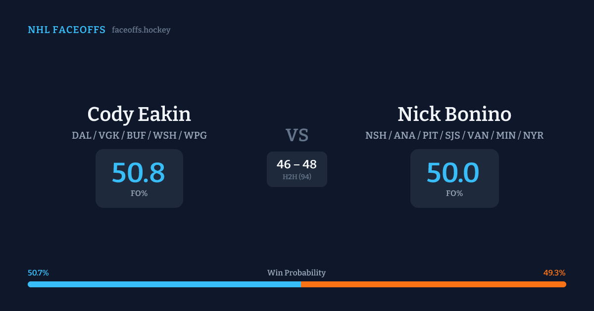 Cody Eakin vs Nick Bonino — Faceoff Head-to-Head