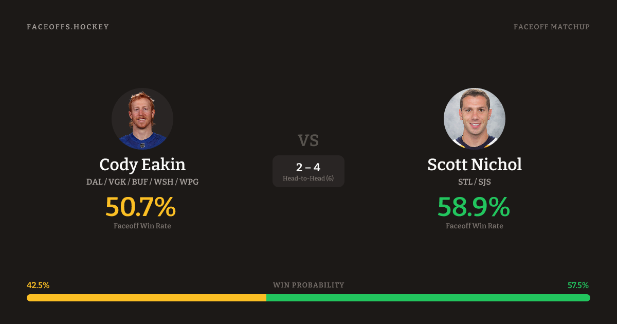 Cody Eakin vs Scott Nichol — Faceoff Head-to-Head