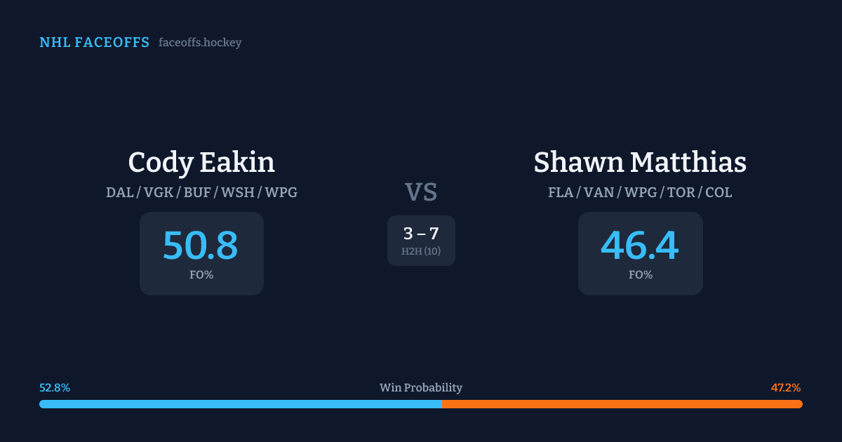 Cody Eakin vs Shawn Matthias — Faceoff Head-to-Head