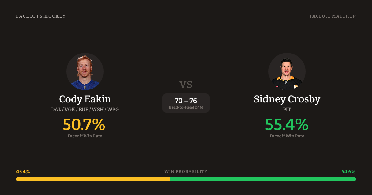 Cody Eakin vs Sidney Crosby — Faceoff Head-to-Head