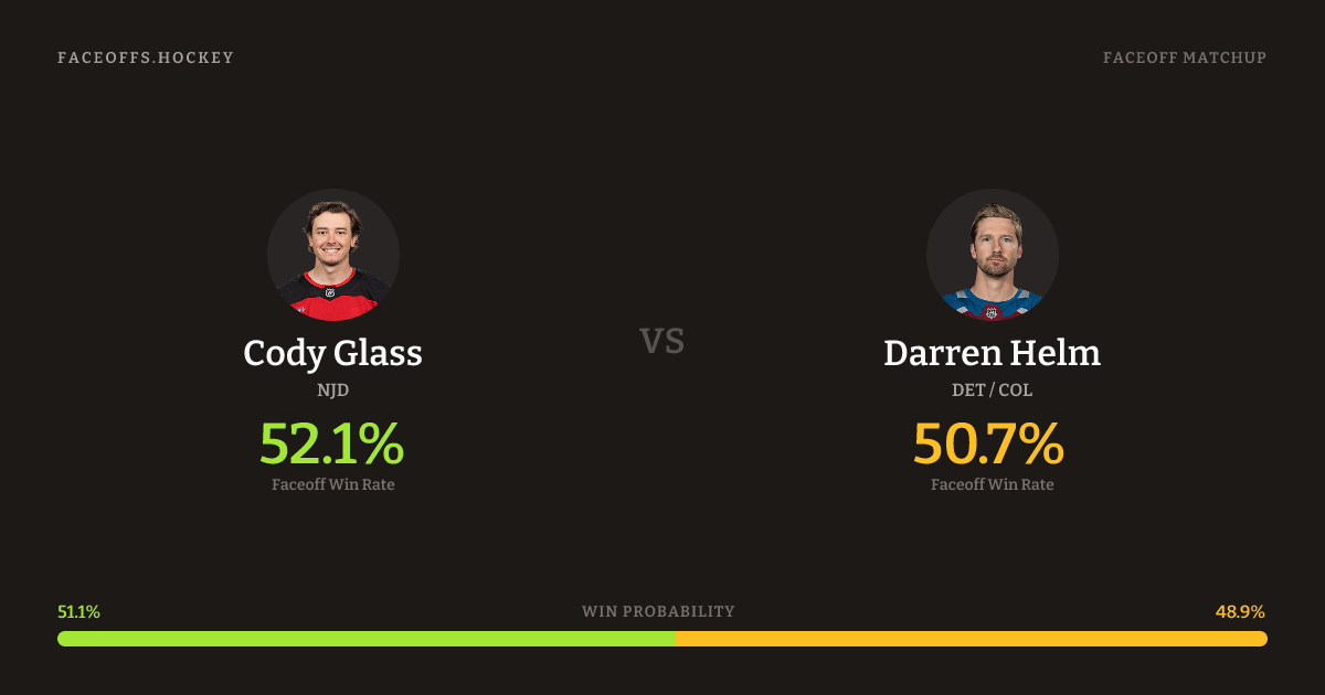 Cody Glass vs Darren Helm — Faceoff Head-to-Head