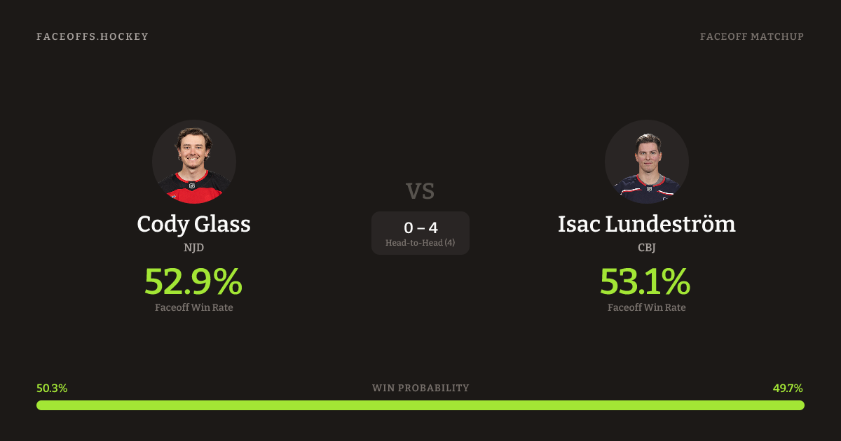 Cody Glass vs Isac Lundeström — Faceoff Head-to-Head