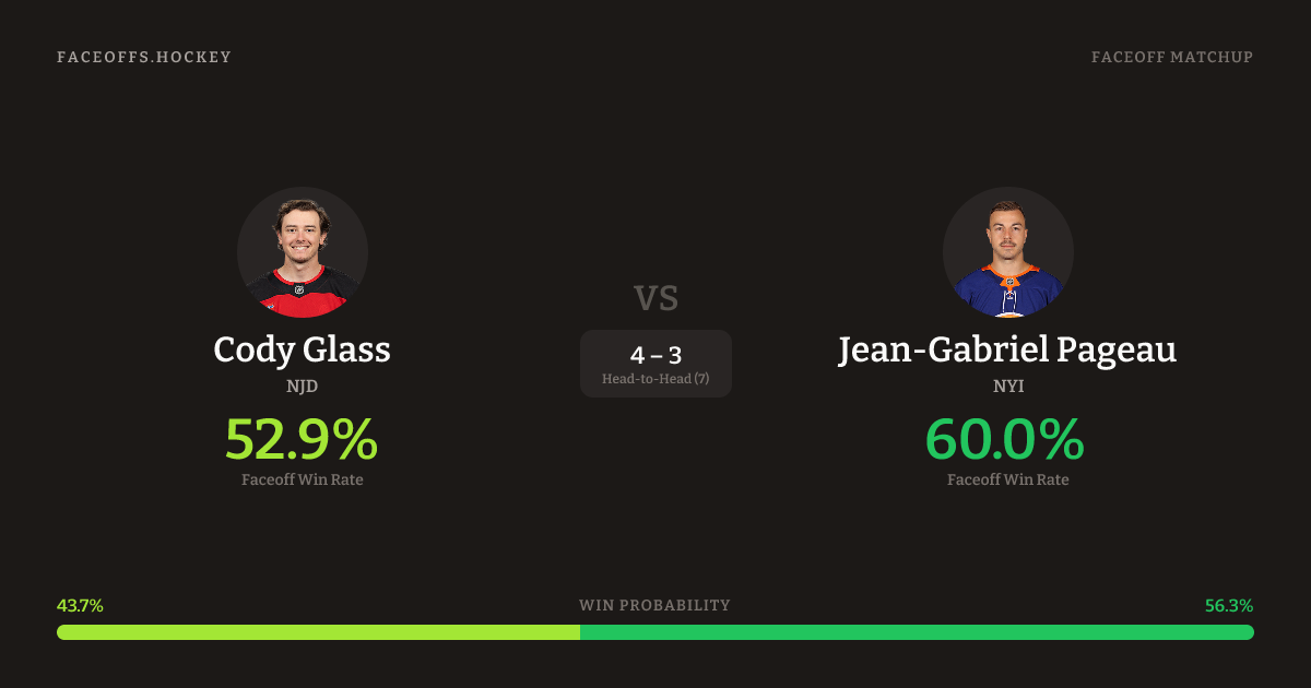 Cody Glass vs Jean-Gabriel Pageau — Faceoff Head-to-Head