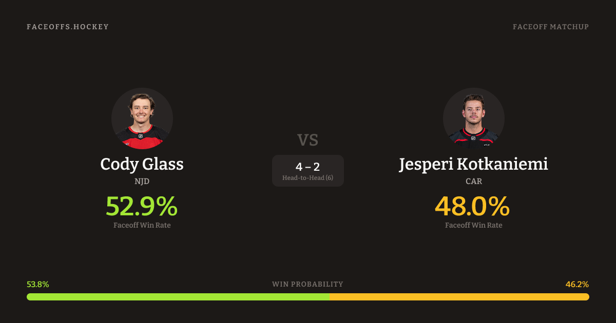 Cody Glass vs Jesperi Kotkaniemi — Faceoff Head-to-Head