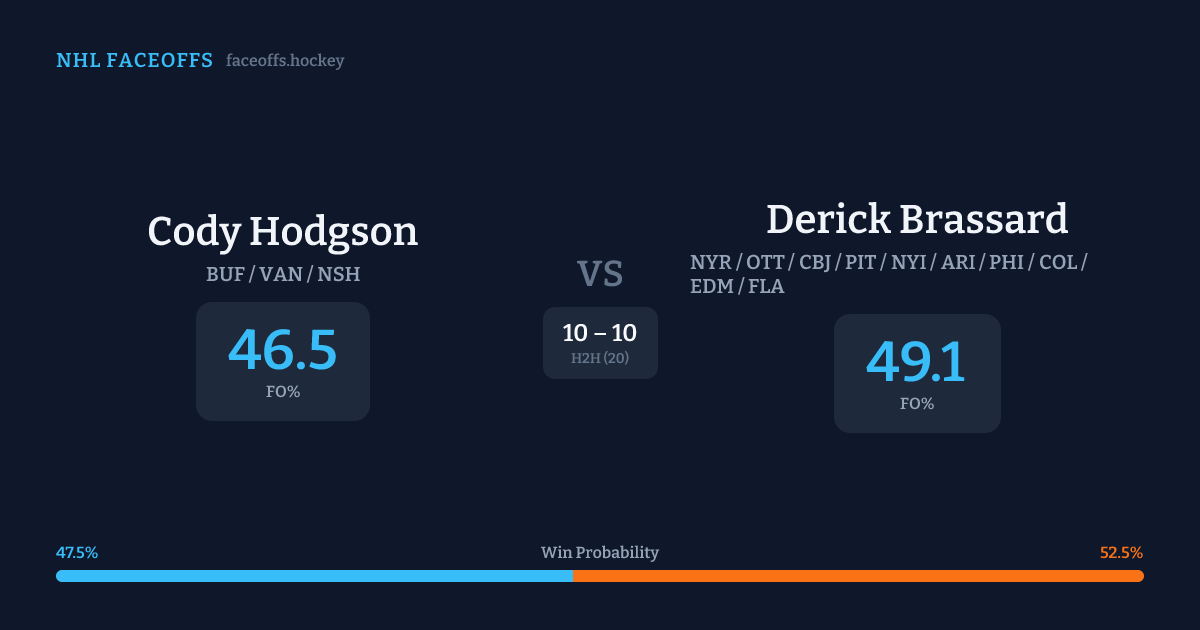 Cody Hodgson vs Derick Brassard — Faceoff Head-to-Head