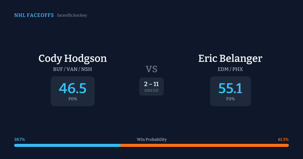 Cody Hodgson vs Eric Belanger — Faceoff Head-to-Head
