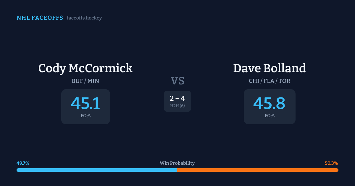 Cody McCormick vs Dave Bolland — Faceoff Head-to-Head