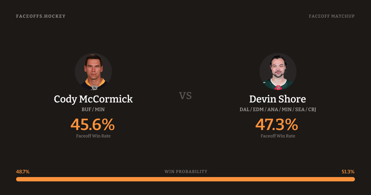 Cody McCormick vs Devin Shore — Faceoff Head-to-Head