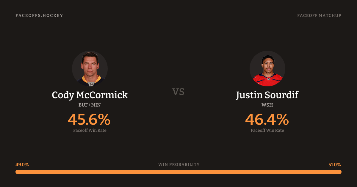 Cody McCormick vs Justin Sourdif — Faceoff Head-to-Head