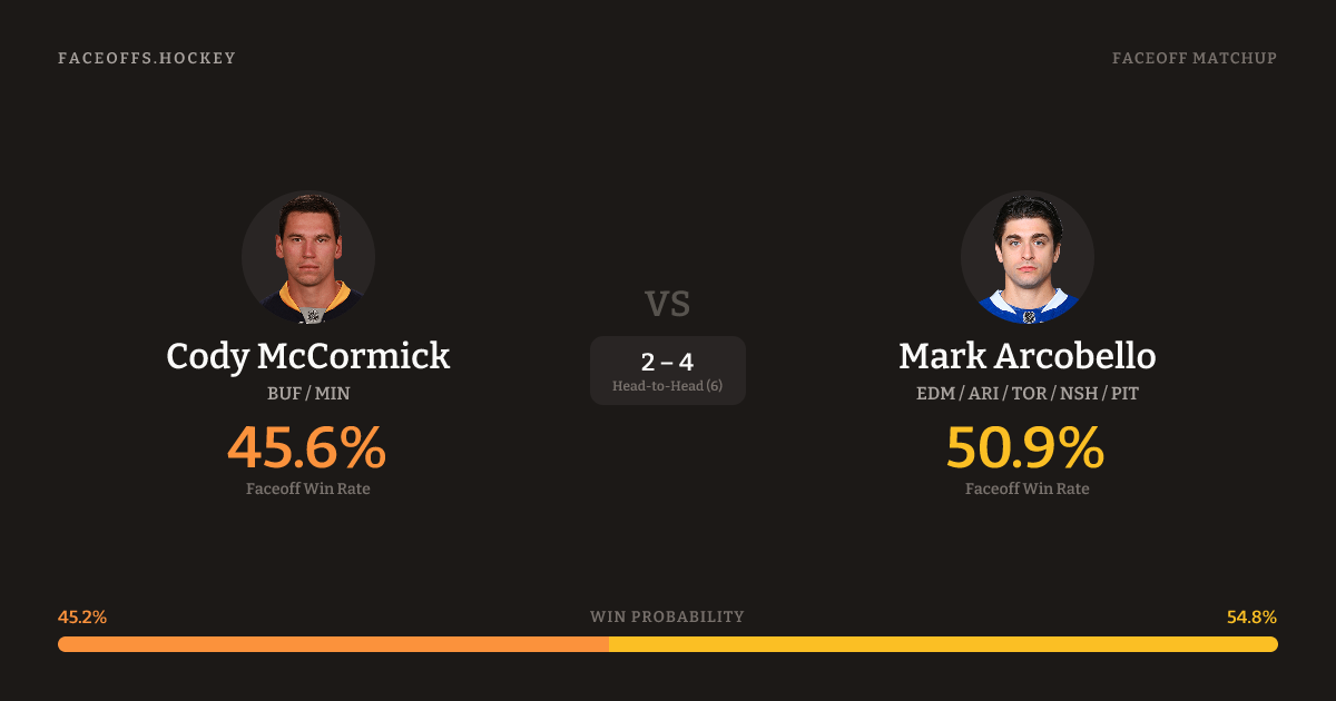 Cody McCormick vs Mark Arcobello — Faceoff Head-to-Head