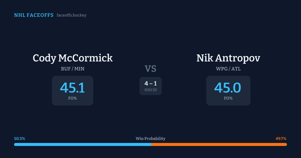 Cody McCormick vs Nik Antropov — Faceoff Head-to-Head