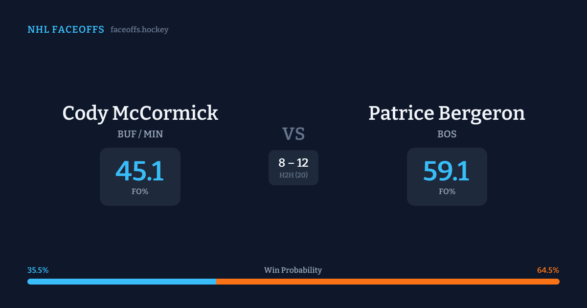 Cody McCormick vs Patrice Bergeron — Faceoff Head-to-Head