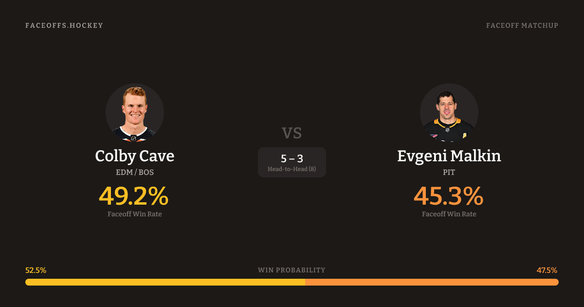 Colby Cave vs Evgeni Malkin — Faceoff Head-to-Head