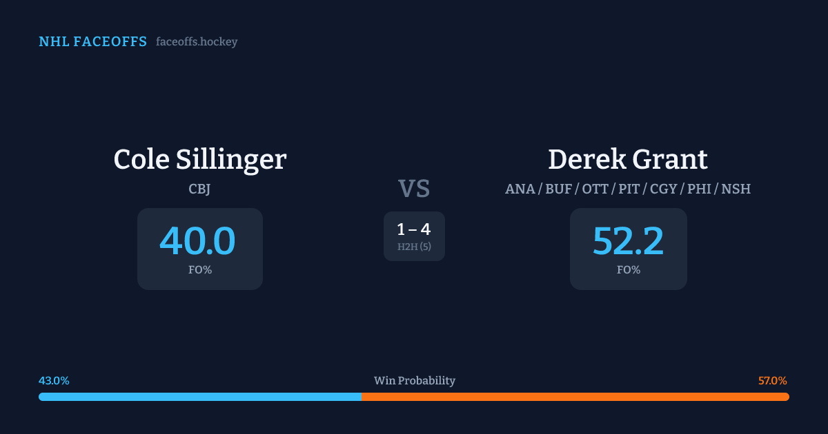 Cole Sillinger vs Derek Grant — Faceoff Head-to-Head