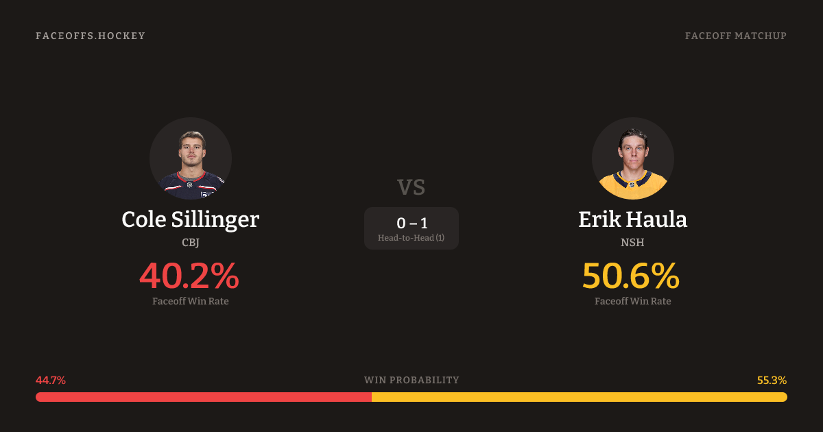 Cole Sillinger vs Erik Haula — Faceoff Head-to-Head