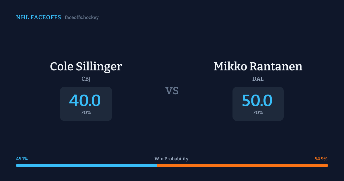Cole Sillinger vs Mikko Rantanen — Faceoff Head-to-Head