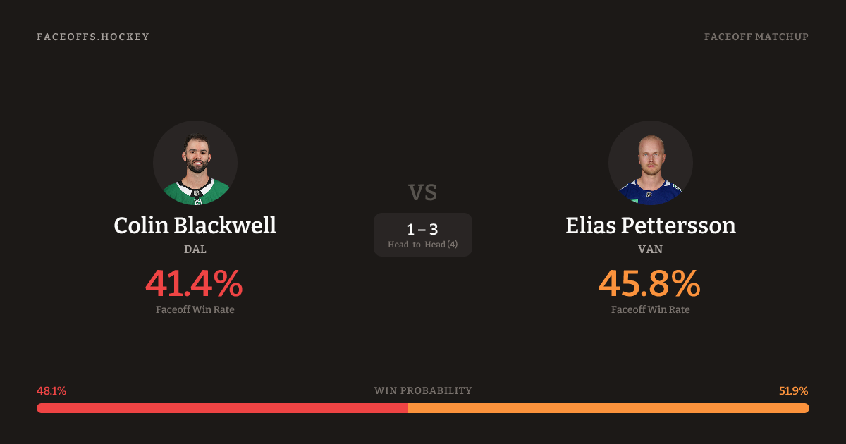 Colin Blackwell vs Elias Pettersson — Faceoff Head-to-Head