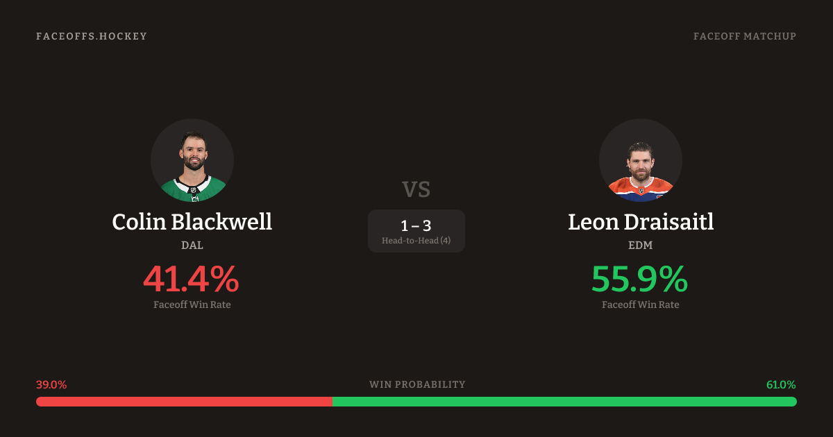 Colin Blackwell vs Leon Draisaitl — Faceoff Head-to-Head