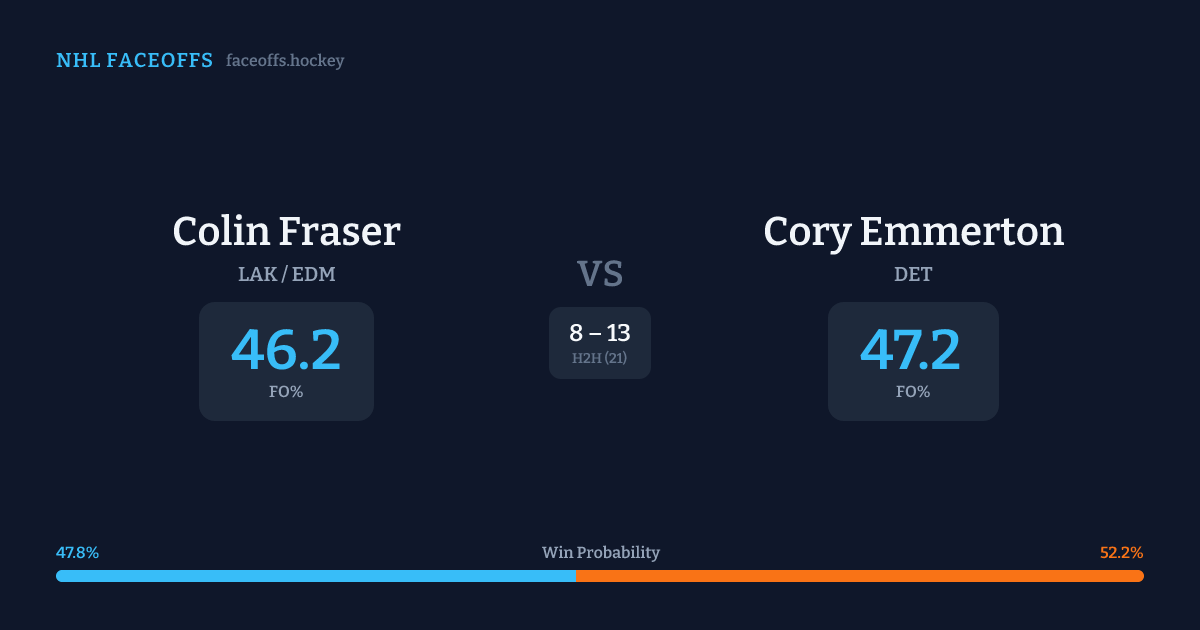 Colin Fraser vs Cory Emmerton — Faceoff Head-to-Head