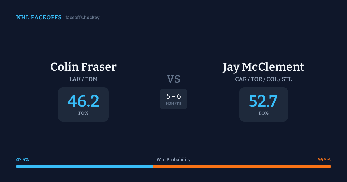 Colin Fraser vs Jay McClement — Faceoff Head-to-Head