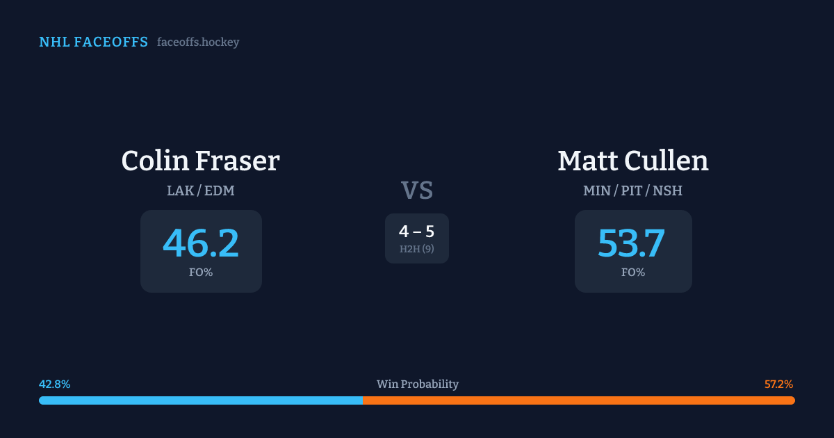 Colin Fraser vs Matt Cullen — Faceoff Head-to-Head
