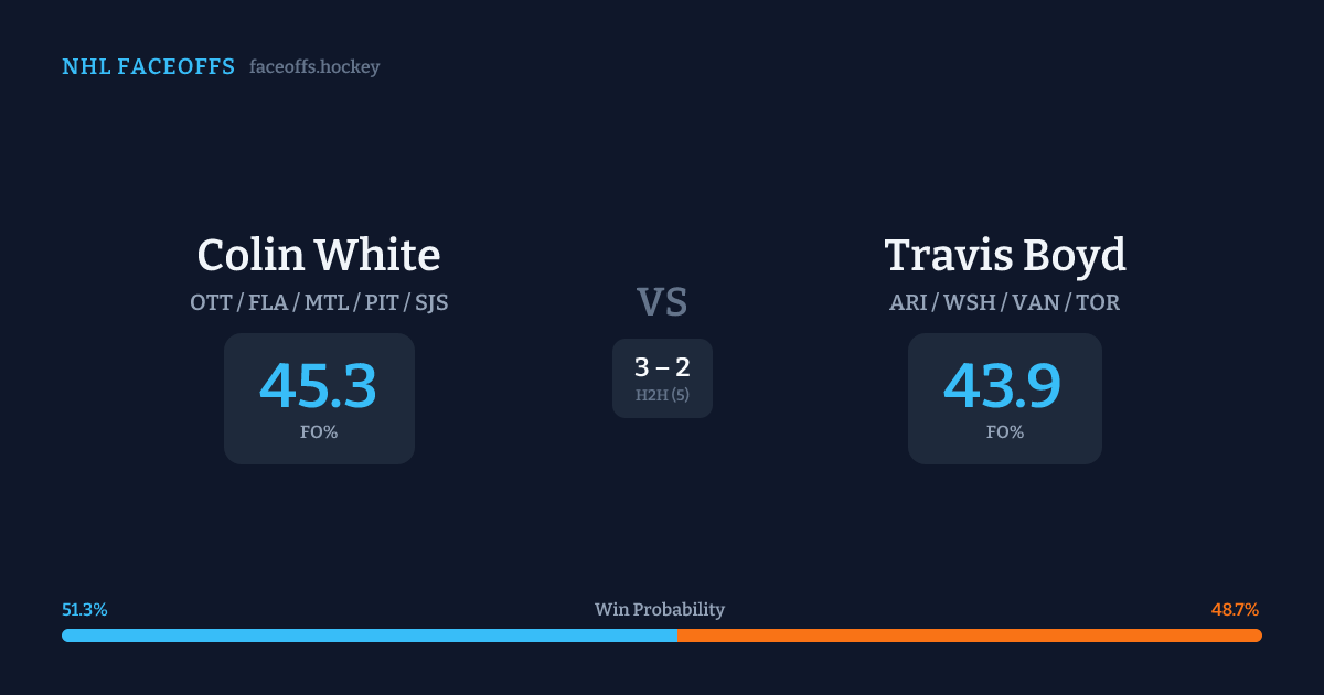 Colin White vs Travis Boyd — Faceoff Head-to-Head