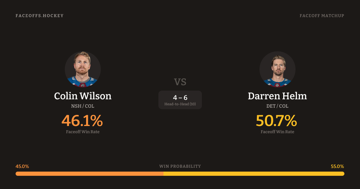 Colin Wilson vs Darren Helm — Faceoff Head-to-Head