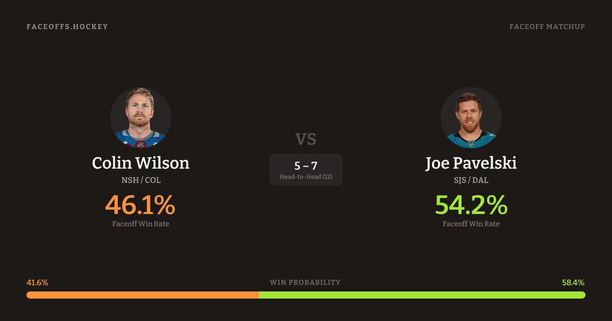 Colin Wilson vs Joe Pavelski — Faceoff Head-to-Head