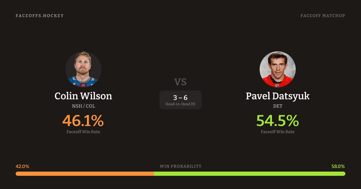Colin Wilson vs Pavel Datsyuk — Faceoff Head-to-Head