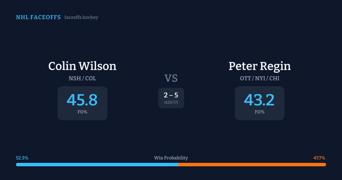 Colin Wilson vs Peter Regin — Faceoff Head-to-Head