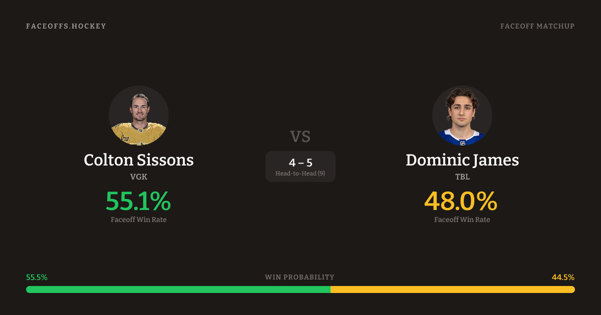 Colton Sissons vs Dominic James — Faceoff Head-to-Head