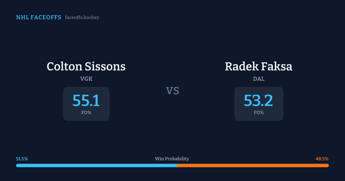 Colton Sissons vs Radek Faksa — Faceoff Head-to-Head