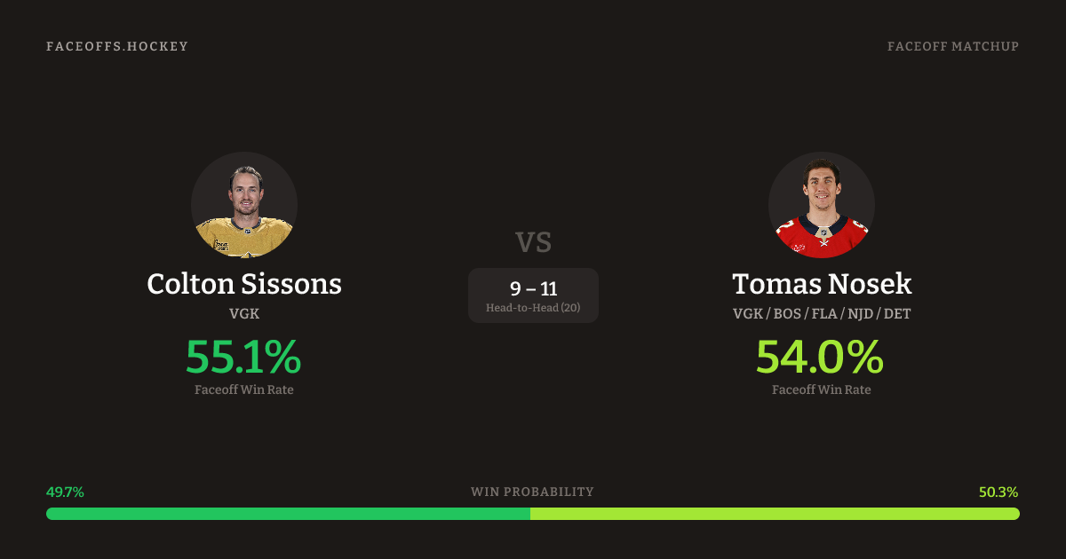 Colton Sissons vs Tomas Nosek — Faceoff Head-to-Head