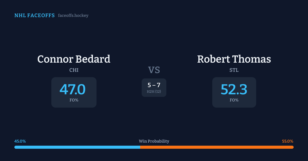 Connor Bedard vs Robert Thomas — Faceoff Head-to-Head