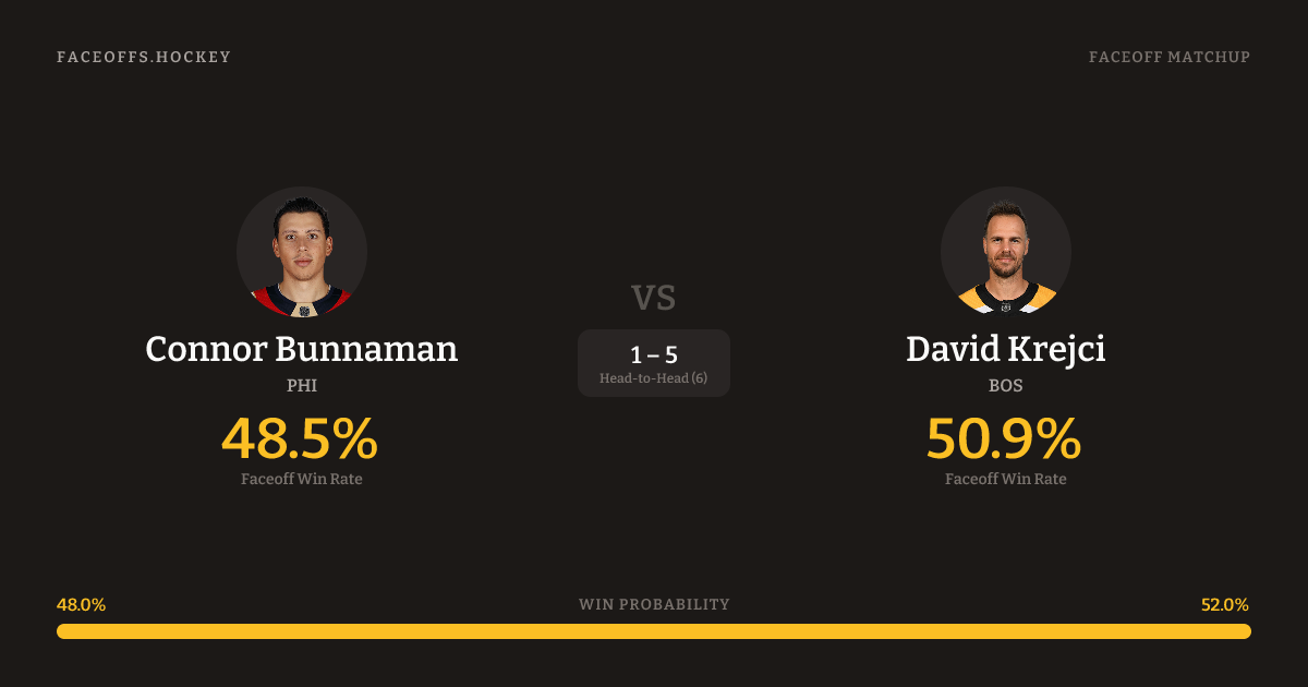 Connor Bunnaman vs David Krejci — Faceoff Head-to-Head