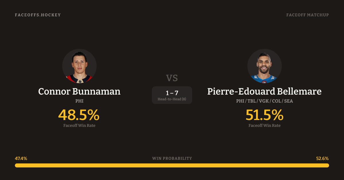 Connor Bunnaman vs Pierre-Edouard Bellemare — Faceoff Head-to-Head